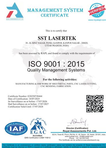 At SST Lasertek, we specialize in precision laser cutting for sheet metal. Our advanced technology ensures high-quality cuts and intricate designs tailored to your specifications.